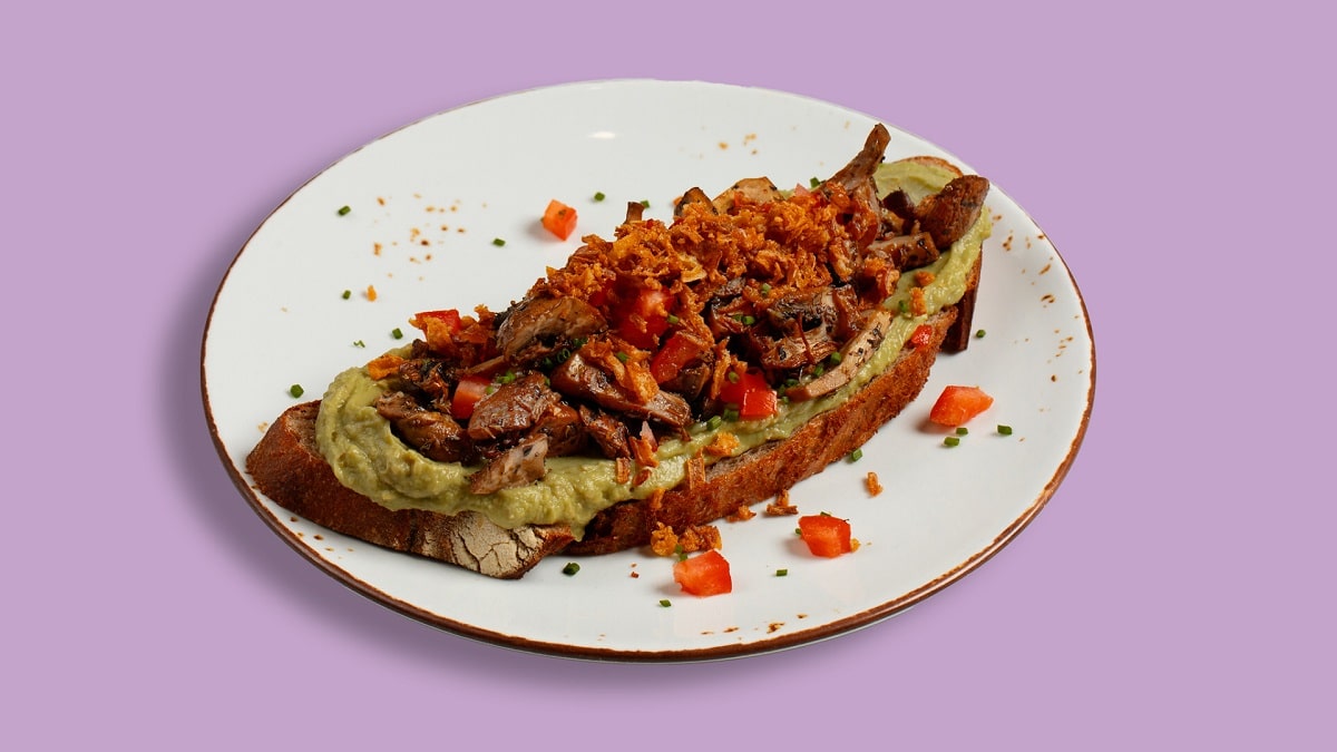 With Sourdough Bread, smashed avocado and cr5ispy onions